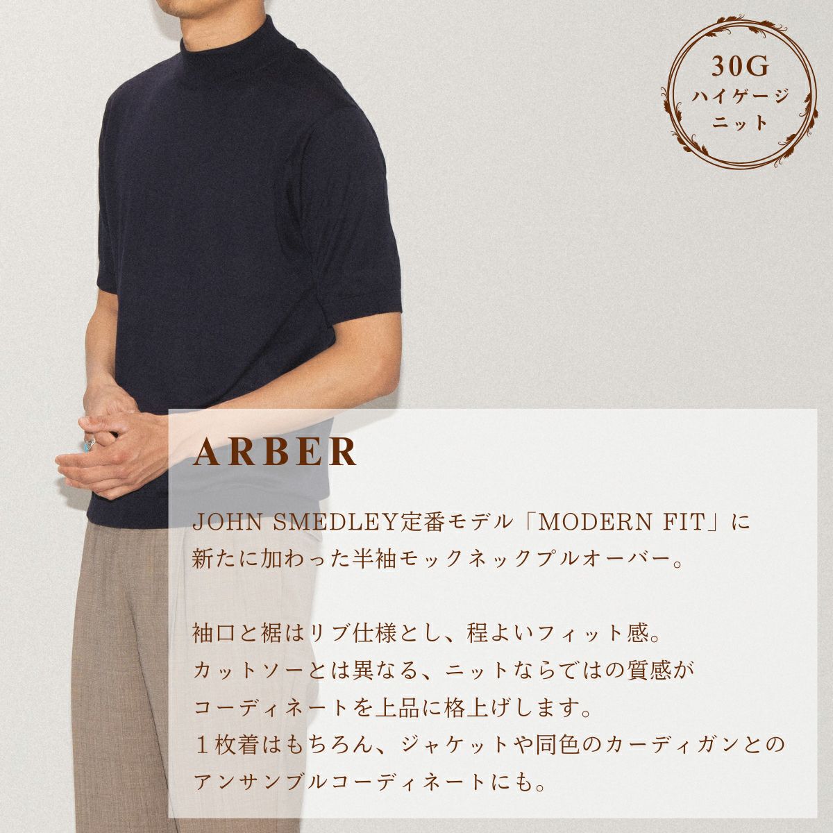 カジュアル 半袖 シャツ 【正規取扱い販売店】ジョンスメドレー JOHN SMEDLEY ARBER モックネック半袖コットンニットTシャツ メンズ 30G 30ゲージ シーアイランドコットン 綿 半袖シャツ ハイゲージ 天然素材 高品質 無地 上品 通気性 なめらかな肌触り ARBER