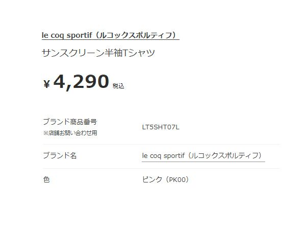 他の画像を見る 【30%OFF】 ルコック le coq sportif サンスクリーン半袖Tシャツ レディース 春 夏 ピンク 桃色 スポーツ フィットネス 半袖 Tシャツ LT5SHT07L-PK00 アウトレット セール メーカー希望小売価格 ¥ 4,290 販売価格 ¥ 2,990 税込 在庫切れ 在庫を見る お気に入りに登録する