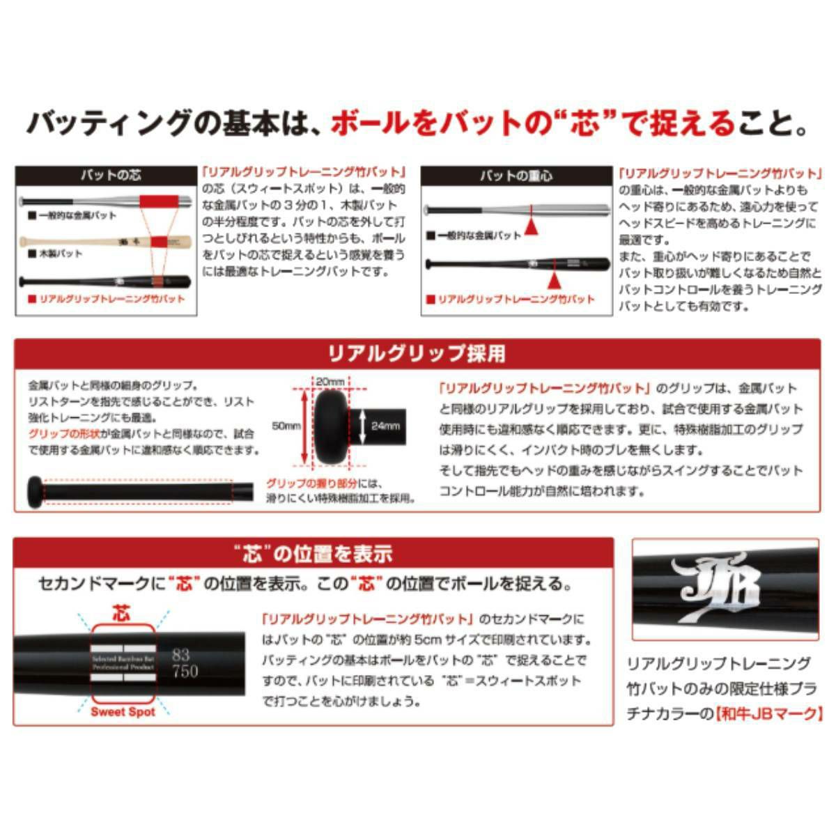 他の画像を見る 野球 硬式 バット 和牛JB WAGYU JB リアルグリップ トレーニング竹バット 一般 ジュニア ブラック 野球 硬式 軟式 トレーニングバット 実打可能 小学生 中学生 ベースボールマリオ BPBW80 BPBW82 BPBW83 BPBW84 メーカー希望小売価格 ¥ 9,680 販売価格 ¥ 9,680 税込 在庫を見る お気に入りに登録する
