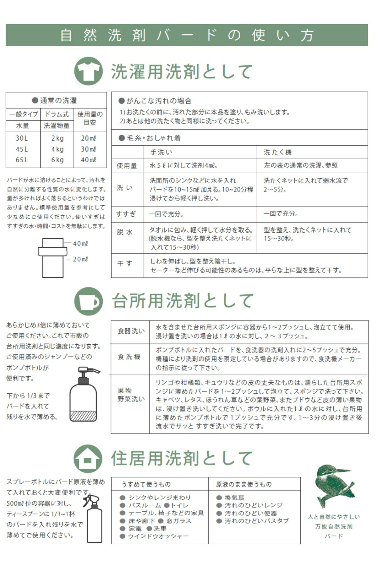 他の画像を見る バード birds 自然洗剤 ボトル 1000ml 1本入り 洗剤 日本製 洗濯 アウトドア キャンプ 敏感肌 洗濯用洗剤 台所用洗剤 キッチン用洗剤 住宅用洗剤 サステナブル 衣食住 洗浄力抜群 万能洗剤 環境 野菜も洗える 低コスト 自然に優しい お子様 赤ちゃん メーカー希望小売価格 ¥ 3,300 販売価格 ¥ 3,300 税込 在庫を見る お気に入りに登録する
