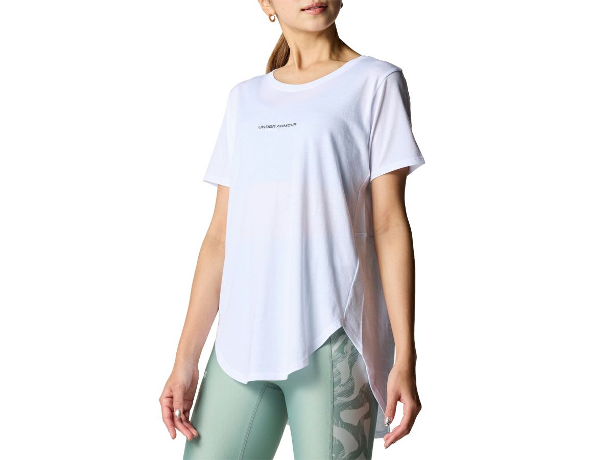 スポーツ フィットネス ウェア アンダーアーマー UNDER ARMOUR UAライブ ロングライン Tシャツ レディース 春 夏 ホワイト 白 スポーツ フィットネス 半袖 Tシャツ 6001377-100
