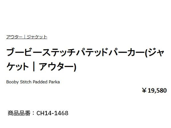 4. チャムス ブービーステッチパテッドパーカー レディース CHUMS Booby Stitch Padded Parka