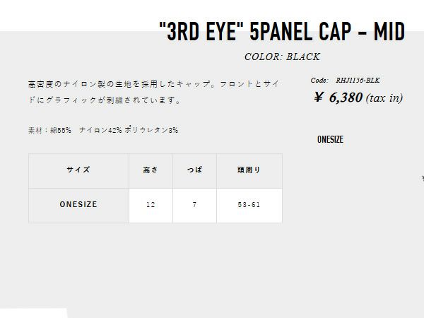5. ロアーク サード アイ 5パネル キャップ ミッド メンズ レディース ユニセックス 男女兼用 ROARK 3RD EYE 5PANEL CAP MID