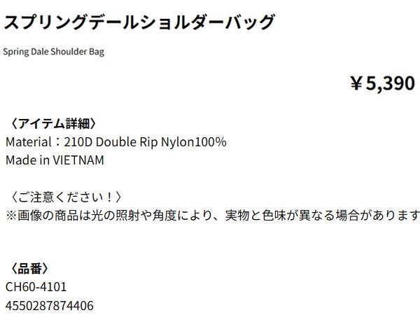 他の画像を見る カジュアル バッグ チャムス スプリングデールサコッシュ ユニセックス CHUMS Spring Dale Sacoche CH60-4103 メーカー希望小売価格 ¥ 3,960 販売価格 ¥ 3,960 税込 在庫を見る お気に入りに登録する