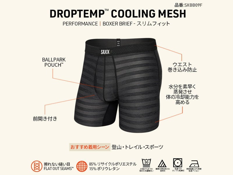 SAXX独自のクーリングテクロノジーで、涼しさを保つシリーズ。