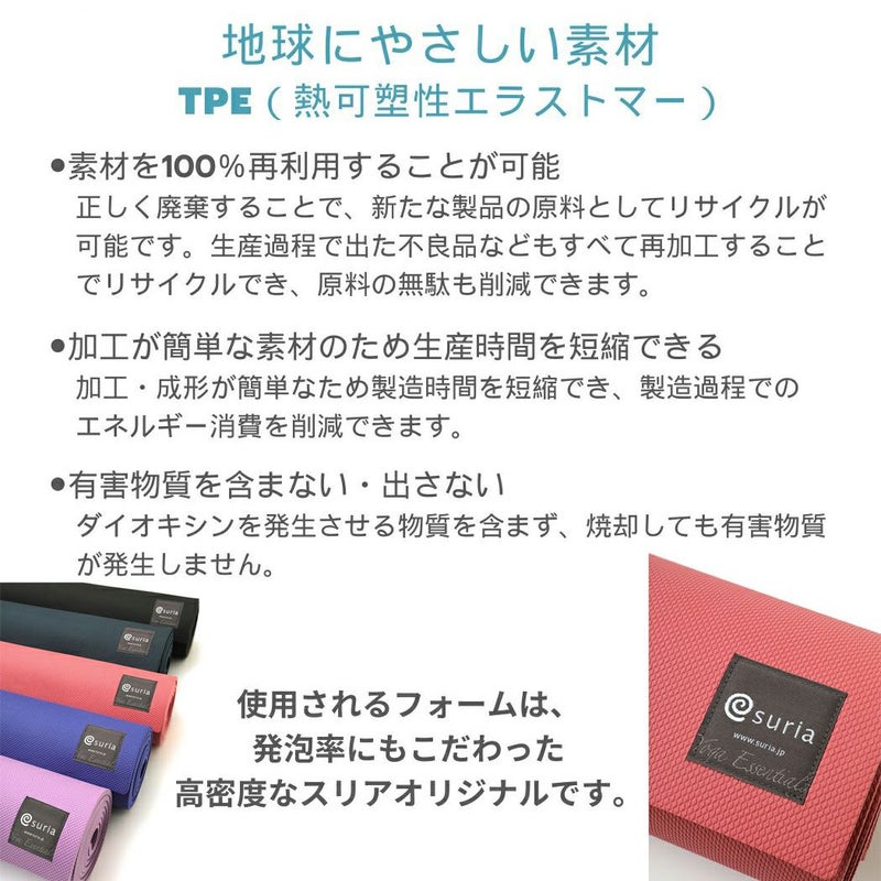 エコロジー派にうれしい、地球環境にやさしい素材「TPE」を使用したヨガマット。