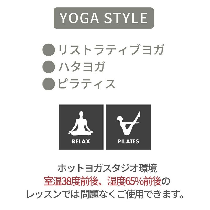 ※ホットヨガスタジオ環境(室温38度前後、湿度65%前後)のレッスンでは問題なくご使用できます。