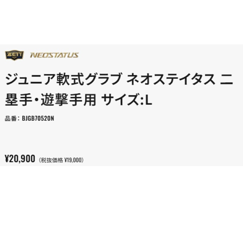 【10%OFF】野球 軟式 グローブ ゼット ZETT ネオステイタス NEOSTATUS 少年軟式用グラブ 内野手用 源田タイプ サイズL ベースボールマリオ 左投げ用あり 野球 軟式 グローブ 二塁手 遊撃手 BJGB70520N