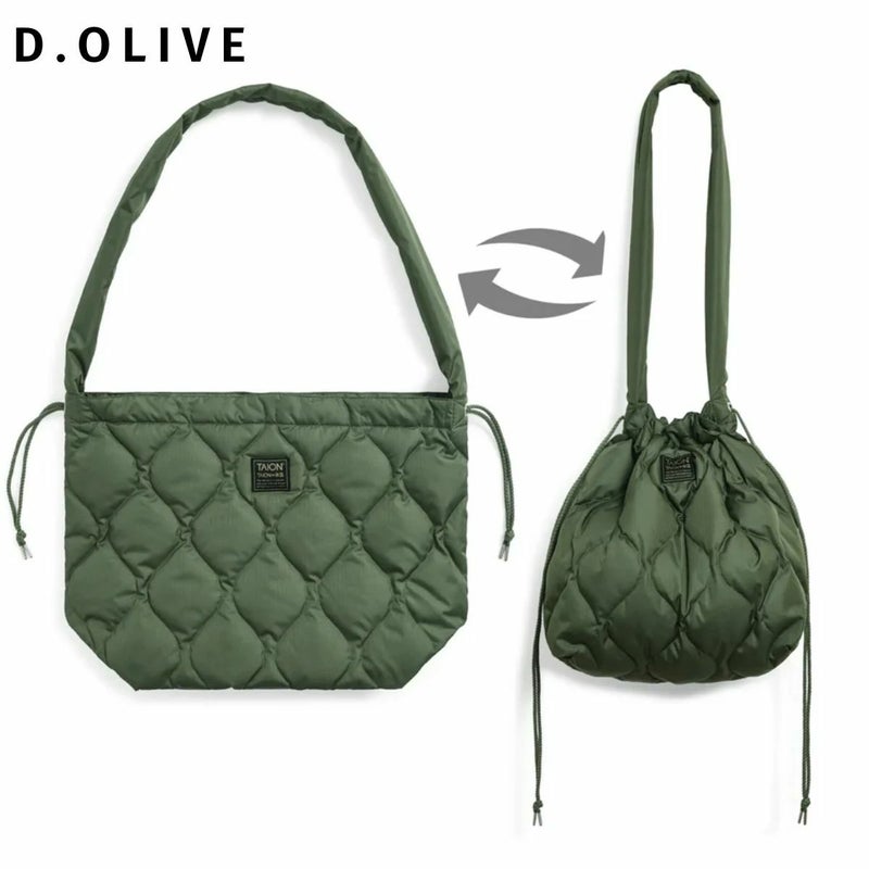 "ショルダーバッグ→巾着バッグ、2WAYで楽しめるダウンバッグ"