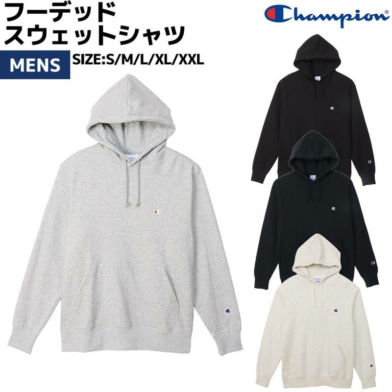 6. チャンピオン Champion HOODED SWEATSHIRT フーデッドスウェットシャツ ベーシック メンズ 秋 冬 グレー ブラック ネイビー オフホワイト カジュアル ウェア パーカー プルオーバー 裏毛 C3-Y136
