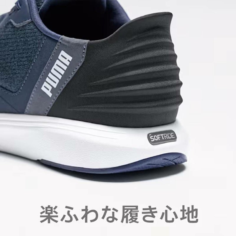 シュータン一体型のスリッポン構造の履き口、かかと部分が柔らかく、立ったまま手を使わず簡単に足入れが可能です。アッパーにメッシュ素材を採用し、軽量で通気性がよく柔らかい履き心地のシューズ。SOFTRIDEミッドソールは、究極のクッション性を提供し一日中快適な履き心地が持続します。ワイズも通常よりワイドになっており、横幅も気にせず履くことが可能。ランニングだけでなく、ウォーキングや外出時にもおすすめの一足です。