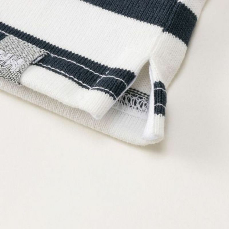 ネックラインにリブを配することで、着脱しやすくしました。