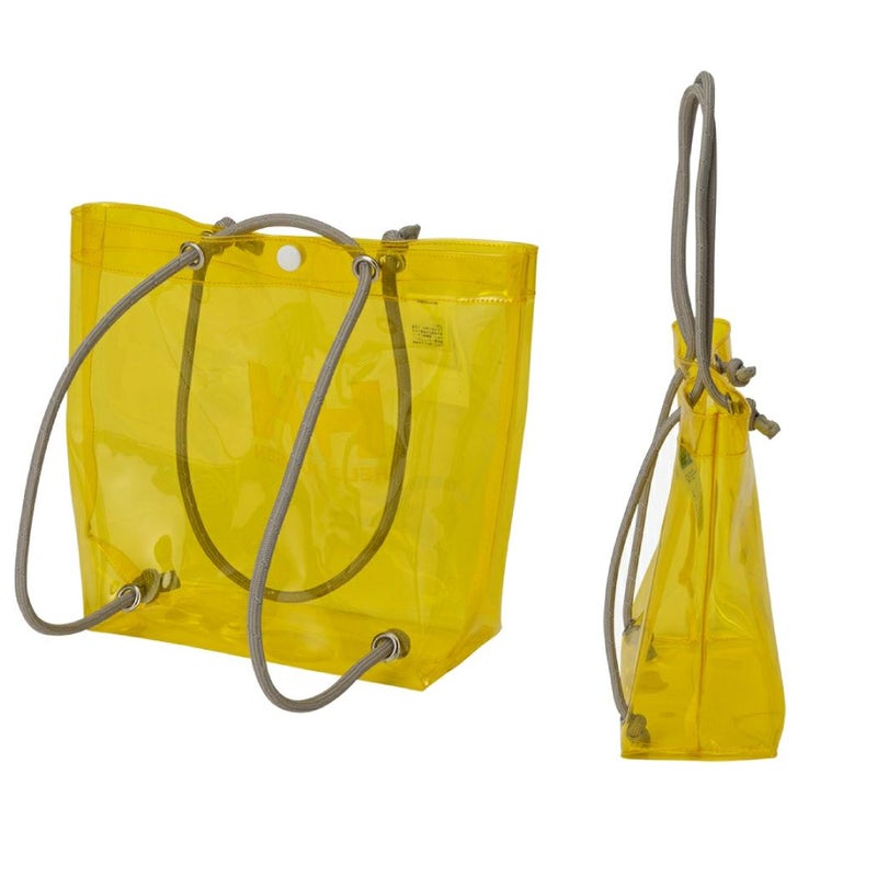 カラフルなクリア素材で仕上げた、ビーチやプールなどの水遊びシーンで活躍するバッグ。濡れたものを気兼ねなく収納できるPVC素材を使用しています。