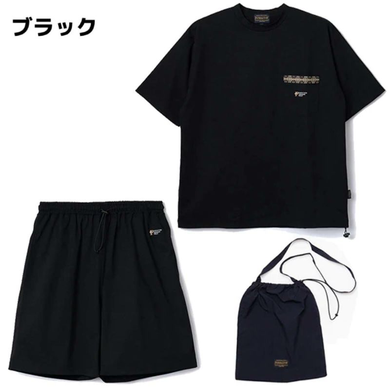 高い吸汗・速乾性を備えた軽量素材を採用し、ドライなタッチで快適な着用感。Tシャツの胸元とショーツの背面ポケットには、ペンドルトンならではの印象的なネイティブ柄があしらわれているのが特徴的です。セットアップでコーディネートを考える必要もありません。