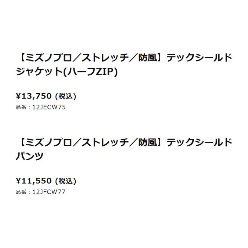 7. ミズノ MIZUNO MizunoPro テックシールドジャケット・パンツ 上下セット ハーフジップ ミズノプロ 2025年秋冬 2025AW