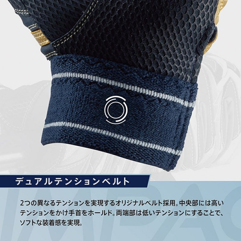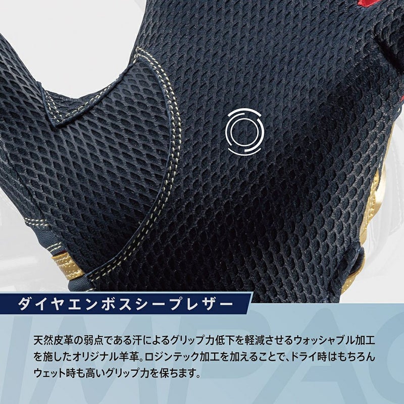 ミズノ独自の指先立体縫製により、指先との密着感が一段とアップ。指の力がスムーズにグリップへと伝わります。