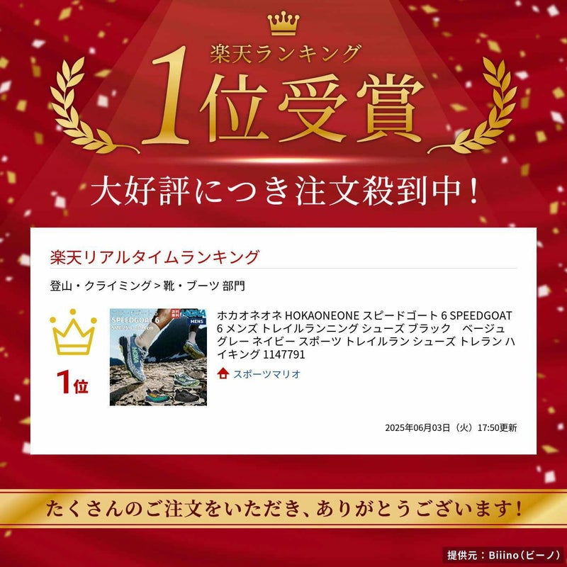 6. ホカ HOKAONEONE スピードゴート 6 SPEEDGOAT 6 メンズ トレイルランニング シューズ ブラック ベージュ グレー ネイビー スポーツ トレイルラン シューズ トレラン ハイキング 1147791