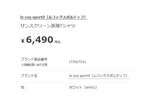 【10%OFF】スポーツ フィットネス ウェア ルコック le coq sportif サンスクリーン長袖Tシャツ レディース ホワイト 白 スポーツ フィットネス 長袖 Tシャツ LT5SLT01L-WH01