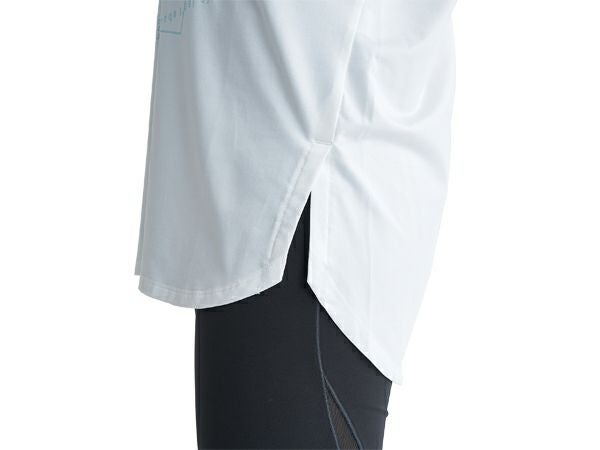 裾にスリットを入れ、後ろの着丈を長めにしたことで、ヒップラインをカバー。