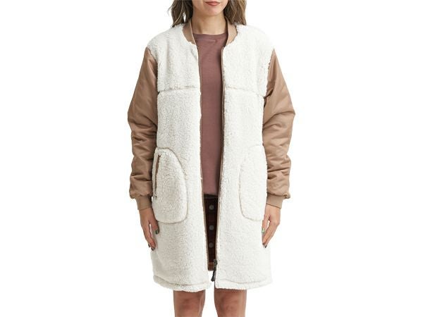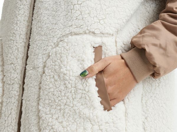 裏側はボアと光沢のあるツイル素材の袖を組み合わせた異素材MIXで、