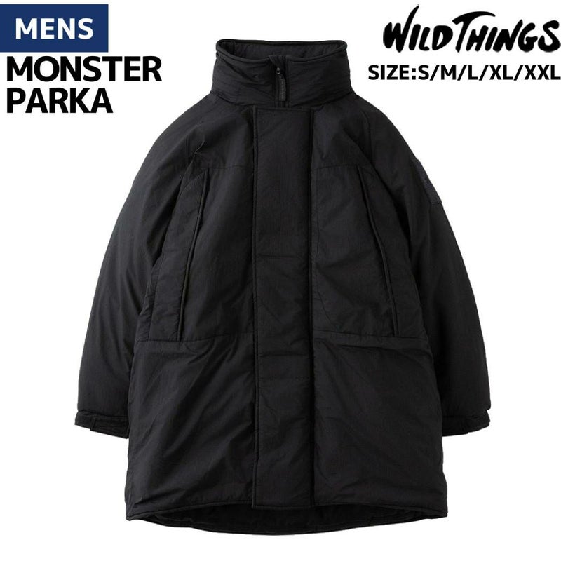 【10%OFF】カジュアル ウェア アウター ワイルドシングス WILD THINGS MONSTER PARKA モンスターパーカー メンズ 冬 定番 ナイロン ブラック カジュアル ウェア アウター 撥水 軽量 保温 ミドル丈 WT242-01