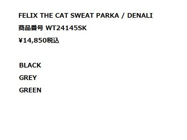 6. ワイルドシングス WILD THINGS FELIX THE CAT SWEAT PARKA DENALI コラボレーション パーカー カジュアル ウェア スウェット WT24145SK アウトレット セール