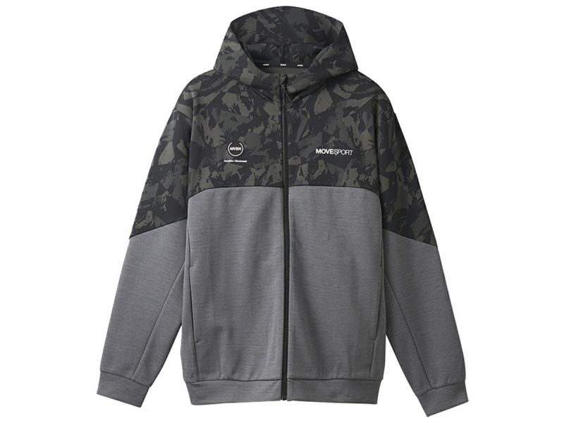 6. デサント DESCENTE S.F.TECH SHIELD 総柄グラフィック フードロゴ フルジップフーディー メンズ 秋 冬 グレー 灰色 スポーツ トレーニング パーカー ジャケット DMMWJF23-BKGY アウトレット セール