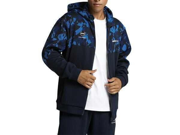 6. デサント DESCENTE S.F.TECH SHIELD 総柄グラフィック フードロゴ フルジップフーディー メンズ 秋 冬 ネイビー 紺 スポーツ トレーニング パーカー ジャケット DMMWJF23-BLNVアウトレット セール
