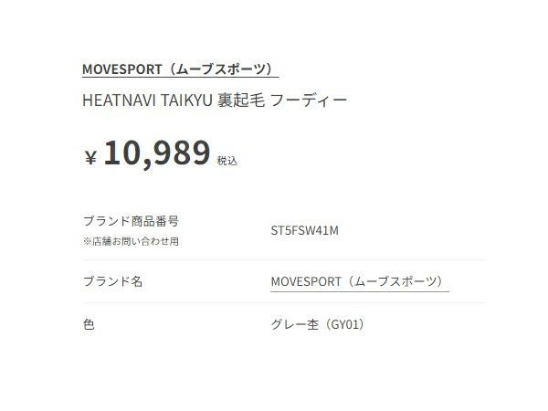 6. ムーブスポーツ ヒートナビ タイキュウ 裏起毛 フーディー メンズ MOVESPORT HEATNAVI TAIKYU Fleece-lined Hoodie