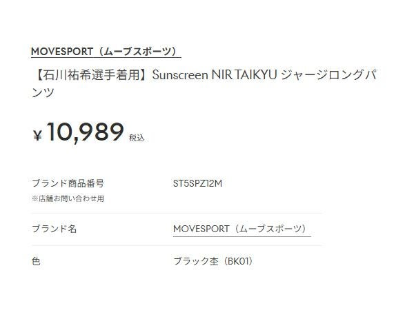 6. ムーブスポーツ サンスクリーン エヌアイアール タイキュウ ジャージロングパンツ 石川祐希選手着用 メンズ MOVESPORT Sunscreen NIR TAIKYU Jersey Long Pants