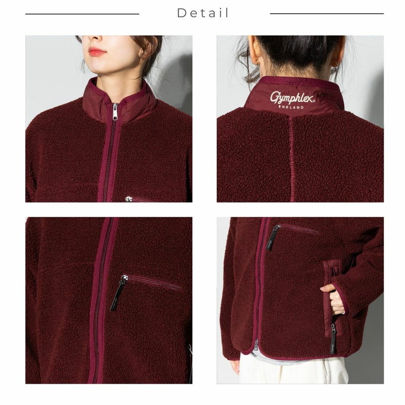 6. ジムフレックス GYMPHLEX ボアブルゾン レディース 秋 冬 アウター レッド 赤 ホワイト ベージュ カジュアル 防寒 ウェア 保温 レトロ スタンドカラー 防風 軽量 GY-A0249 アウトレット セール
