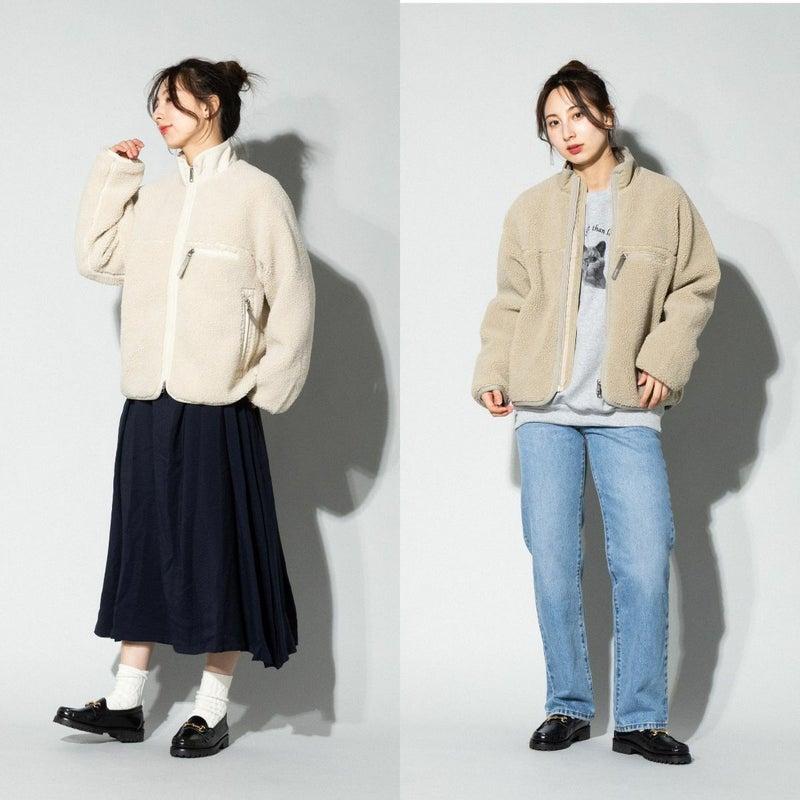 - カジュアルなボアジャケット