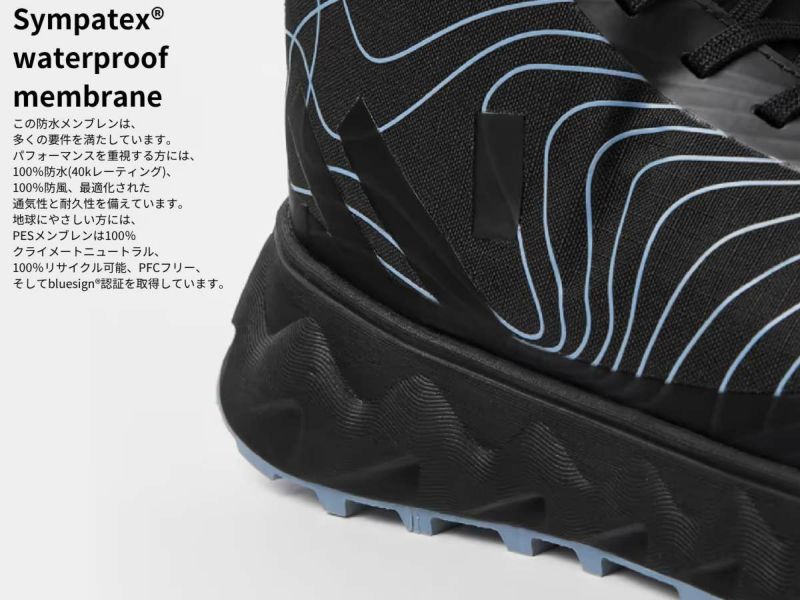 私たちが Sympatex防水メンブレンを選んだのは、地球に優しく、高性能でもあるからです。PESメンブレンは100%防水(40K)、100%の防風性能、非常に高い通気性と耐久性に優れ、bluesignR 認証を取得しており、クライメイト-ニュートラルで、リサイクル可能、有害なPFCが含まれていません。