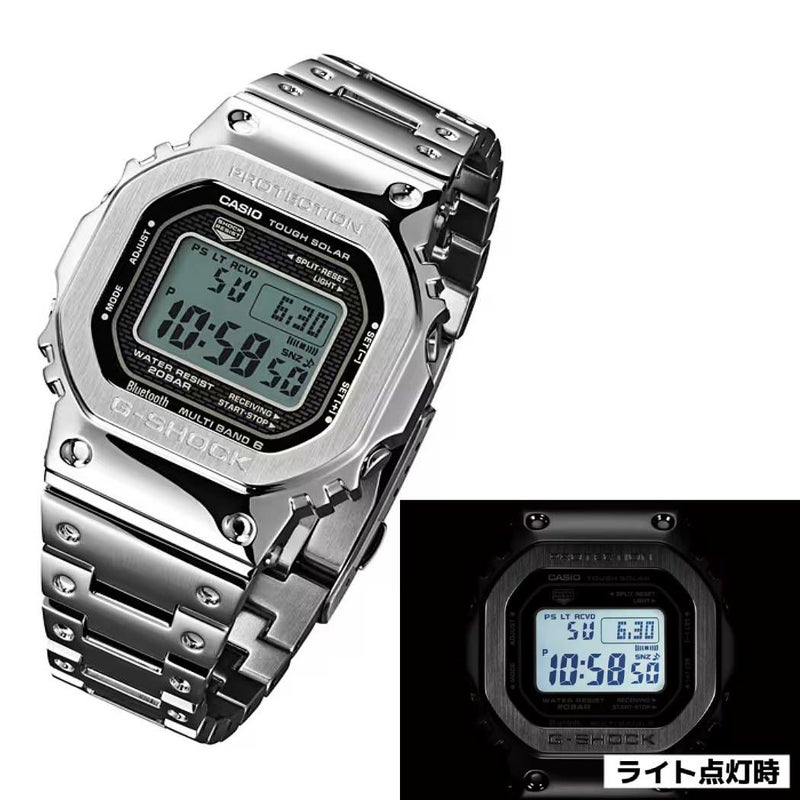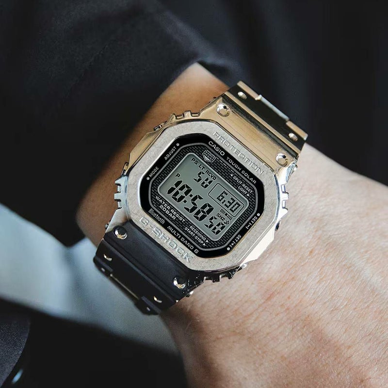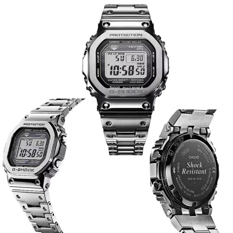 1983年に誕生したG-SHOCK初号機DW-5000C。その象徴であるスクエアデザインはそのままにフルメタル化し、スマートフォンリンクをはじめとした先進機能を搭載したGMW-B5000シリーズです。