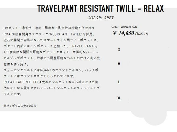 他の画像を見る 【5%OFF】 ロアーク トラベルパンツ レジスタント ツイル リラックス メンズ ROARK TRAVELPANT RESISTANT TWILL-RELAX メーカー希望小売価格 ¥ 14,850 販売価格 ¥ 14,108 税込 在庫を見る お気に入りに登録する