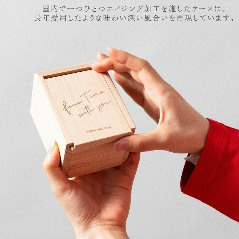 VAGUE WATCH Co.初となる"クロコダイルベルト"をあしらった「COUSSIN 12」。文字盤はモデル名のとおり"12"のアップライトインデックスを配したミニマルなデザイン。ベルトは国産のクロコダイルを使用したこだわりの作りで、シンプルな文字盤デザインと相まって"大人の装い"を演出します。ブランドの特徴でもあるエージング加工を施した本体ケースは長い時間を経てきたような風合いを表現しています