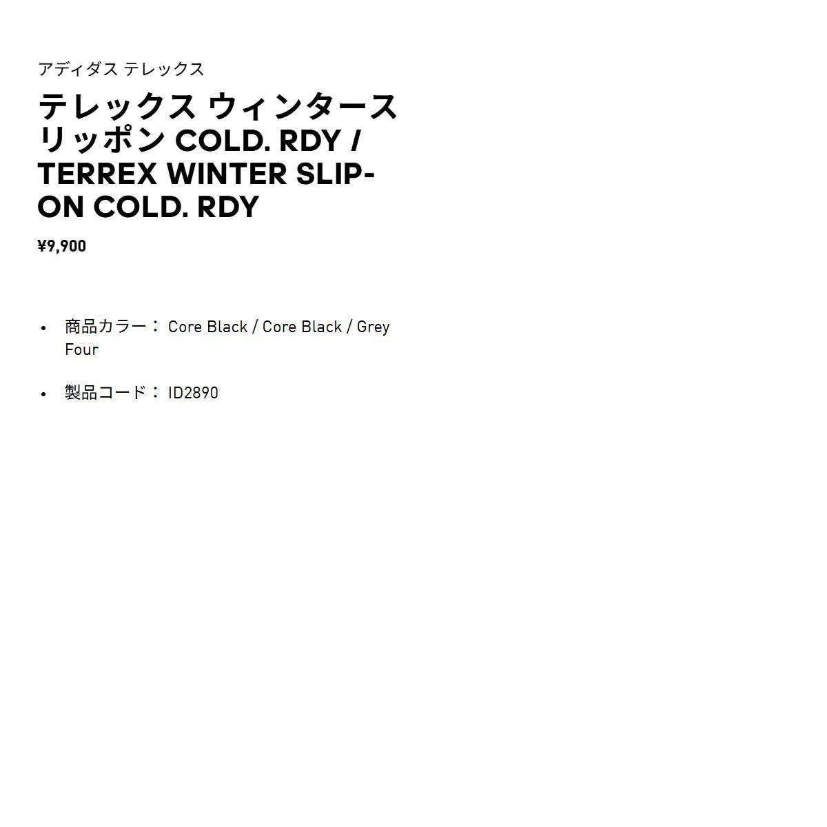 他の画像を見る 【25%OFF】シューズ スニーカー アディダス テレックス ウィンタースリッポン Cold. Rdy メンズ レディース ユニセックス adidas Terrex Winter Slip-On Cold. Rdy メーカー希望小売価格 ¥ 9,900 販売価格 ¥ 7,425 税込 在庫切れ 在庫を見る お気に入りに登録する