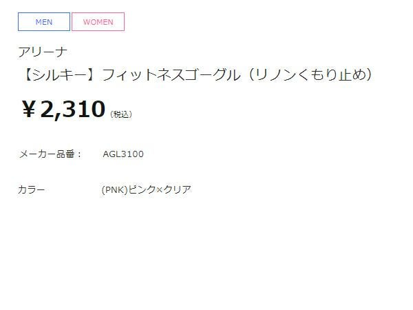 アリーナ arena シルキー フィットネスゴーグル(リノンくもり止め) レディース ピンク 水泳 スイム 小物 ゴーグル AGL-3100-PNK