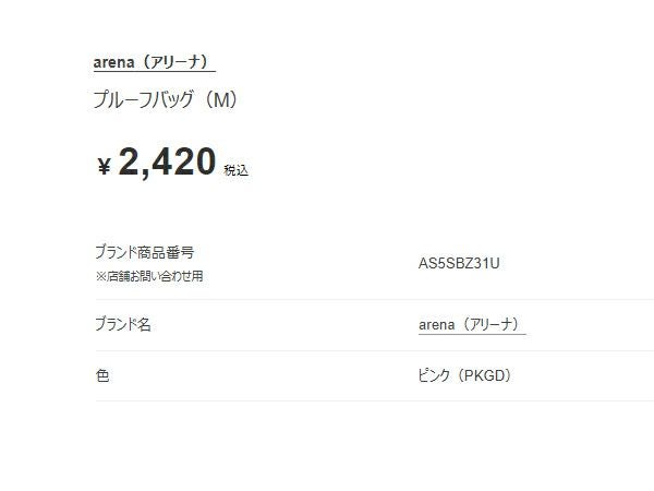6. アリーナ arena プルーフバッグ(M) メンズ レディース ジュニア ピンク 桃色 水泳 スイム ポーチ 小物入れ AS5SBZ31U-PKGD