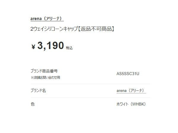 6. アリーナ arena 2ウェイシリコーンキャップ ユニセックス ホワイト 白 水泳 スイム キャップ 帽子 AS5SSC31U-WHBK