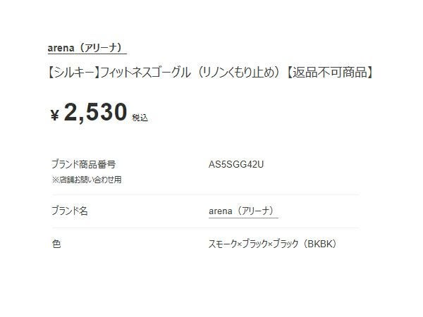 5. アリーナ シルキー フィットネスゴーグル(リノンくもり止め) ユニセックス arena Silky Fitness Goggles (Linon Anti-Fog)