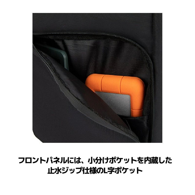 ・フロントパネルには、小分けポケットを内蔵した止水ジップ仕様のL字ポケット