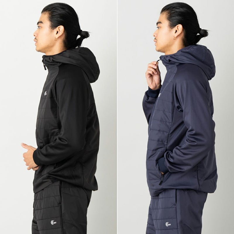 6. インフィット INFIT グラフェン中綿ニット切り替えジャケット メンズ 秋 冬 ブラック ネイビー 裏起毛 軽量 保温 スポーツ トレーニング ウエア ゴルフ ストレッチ 抗菌防臭 両サイドポケット ベンチレーション フルジップ フード 袖口リブ AI23571 アウトレット セール