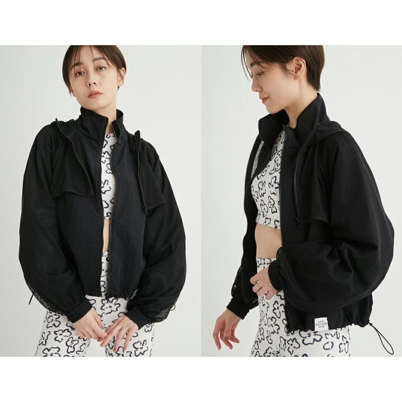 ショート丈のメッシュブルゾンは、単体でヨガウエアの上に