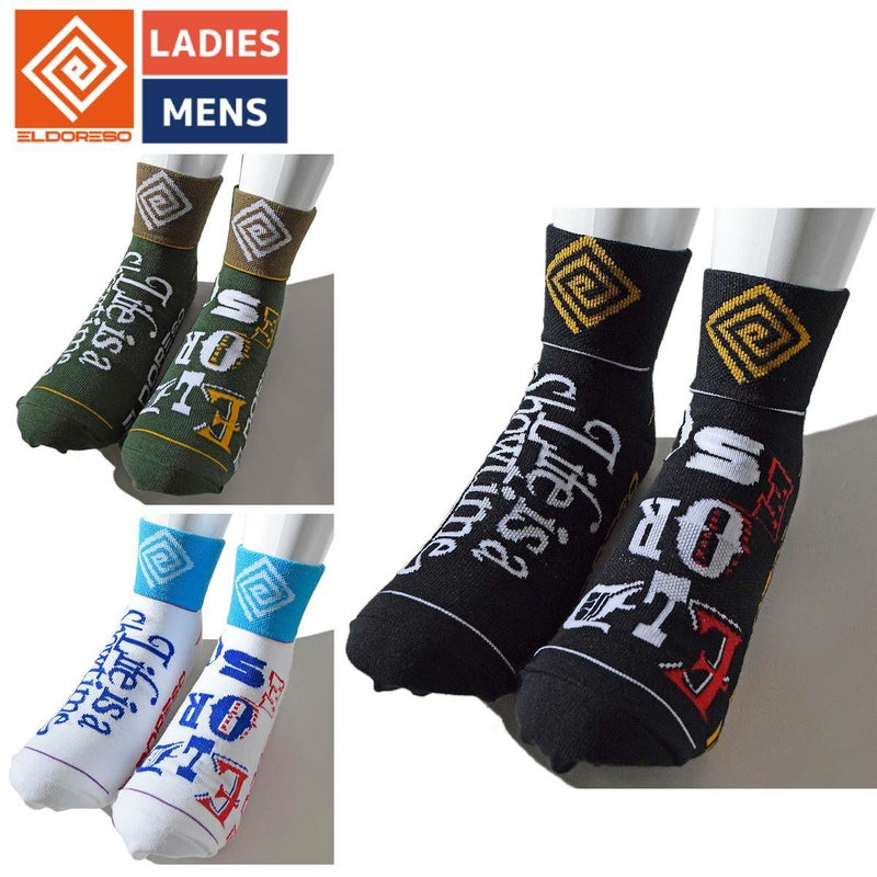 スポーツ 靴下 ソックス エルドレッソ ELDORESO ライフ イズ ソックス メンズ レディース ユニセックス Life Is Sox ジャカード ブラック グリーン ホワイト スポーツ 靴下 ソックス ショート丈 吸水 速乾 E7603515
