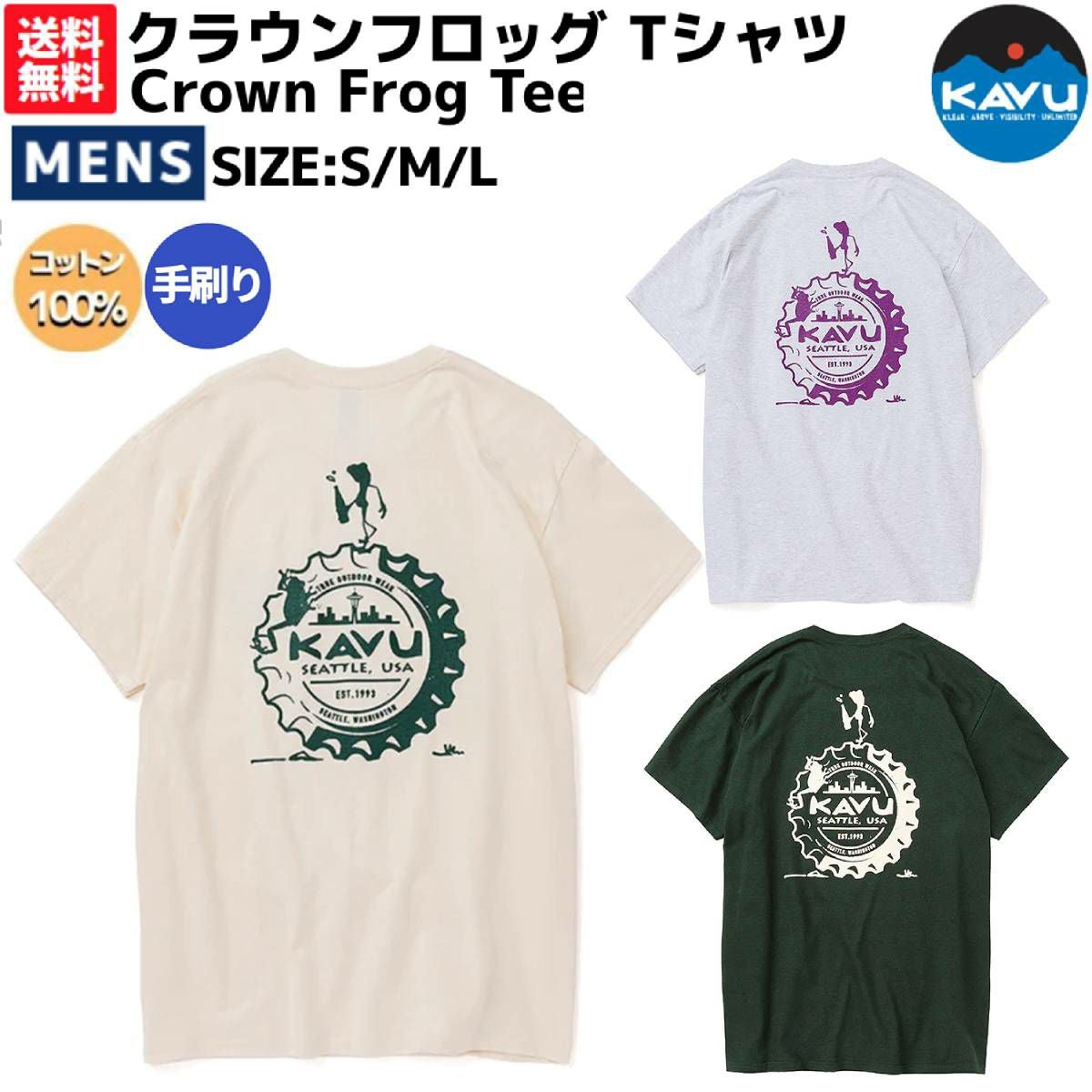 【20%OFF】カジュアル 半袖 シャツ カブー KAVU Crown Frog Tee クラウンフロッグ Tシャツ 半袖 メンズ 春 夏 カエル 蛙 カジュアル 半袖 シャツ 手刷り 19822265