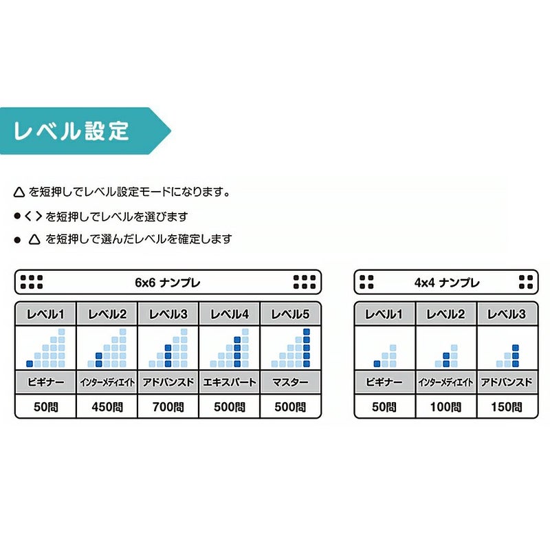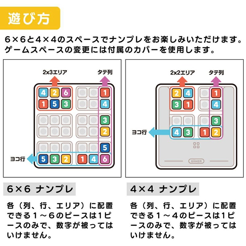 6×6と4×4のスペースでナンプレをお楽しみいただけます。