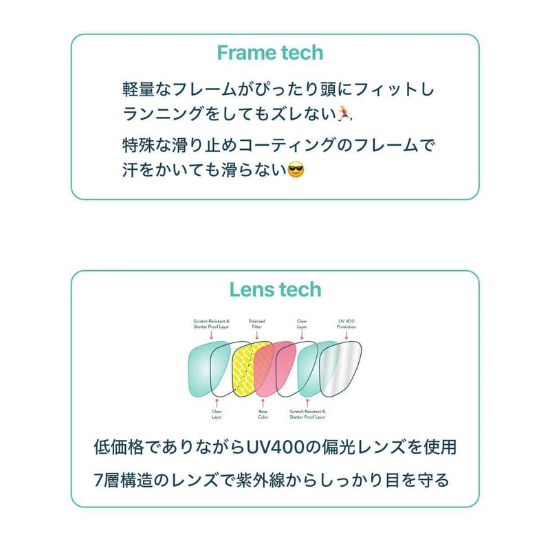 ●Functiona(実用的)・・・すべらない、ずれない、眩しくない、UV400 で快適なランニングを!