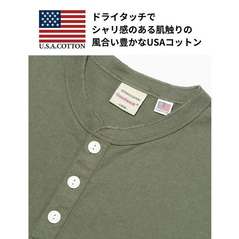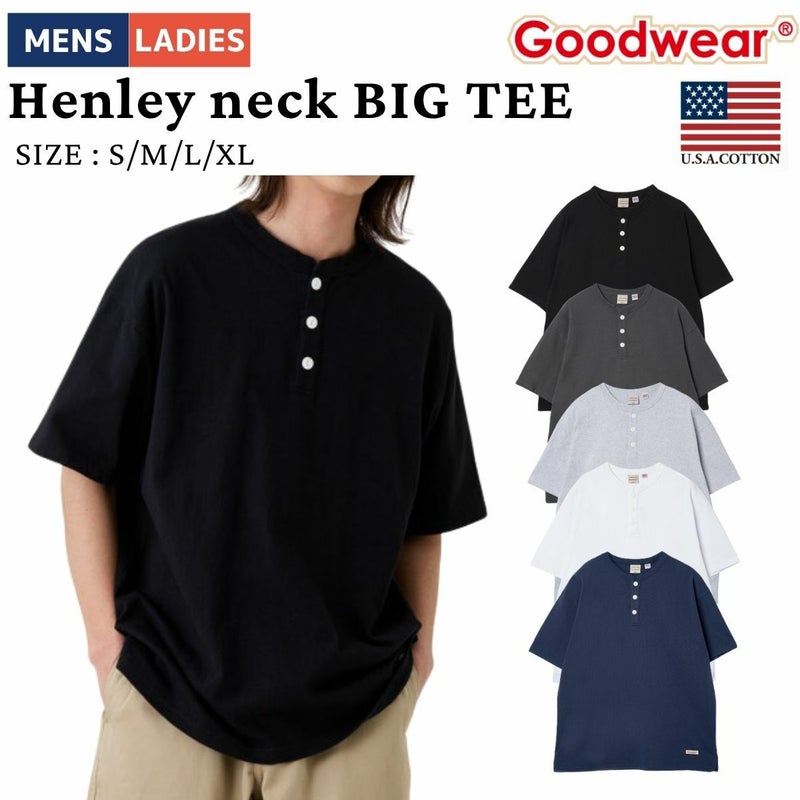 6. グッドウェア Goodwear USAコットン ヘンリーネック BIG Tシャツ メンズ レディース ユニセックス 春 夏 カジュアル 半袖 シャツ ビッグシルエット 7.6オンス 2W7-15201 アウトレット セール