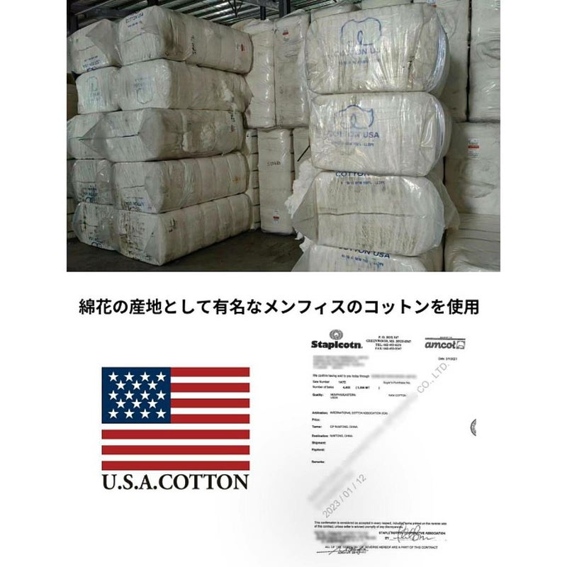 綿100%(USAコットン、260g/m2=7.6oz)